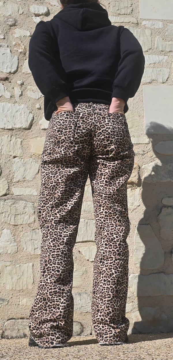 Jeans long, large, sans ourlet pour le porter comme ça (effiloché) ou le faire à la hauteur qui convient, chacun est libre.