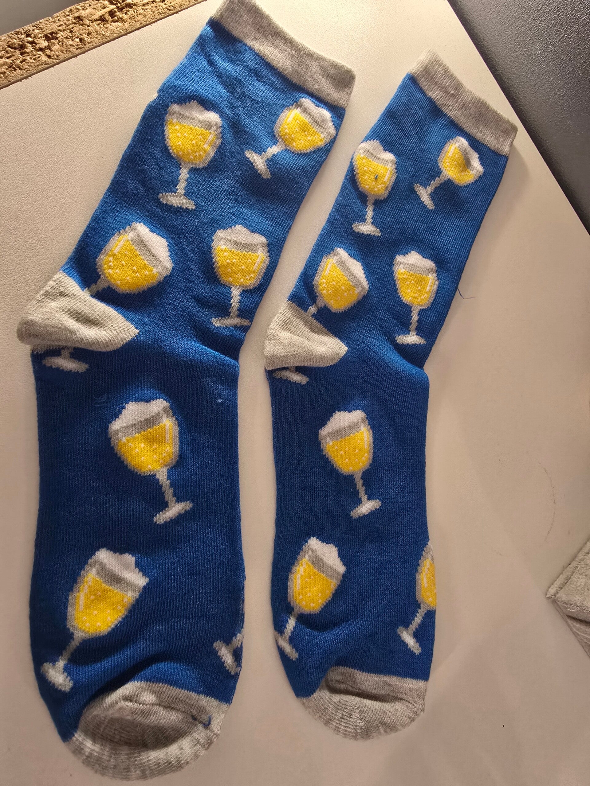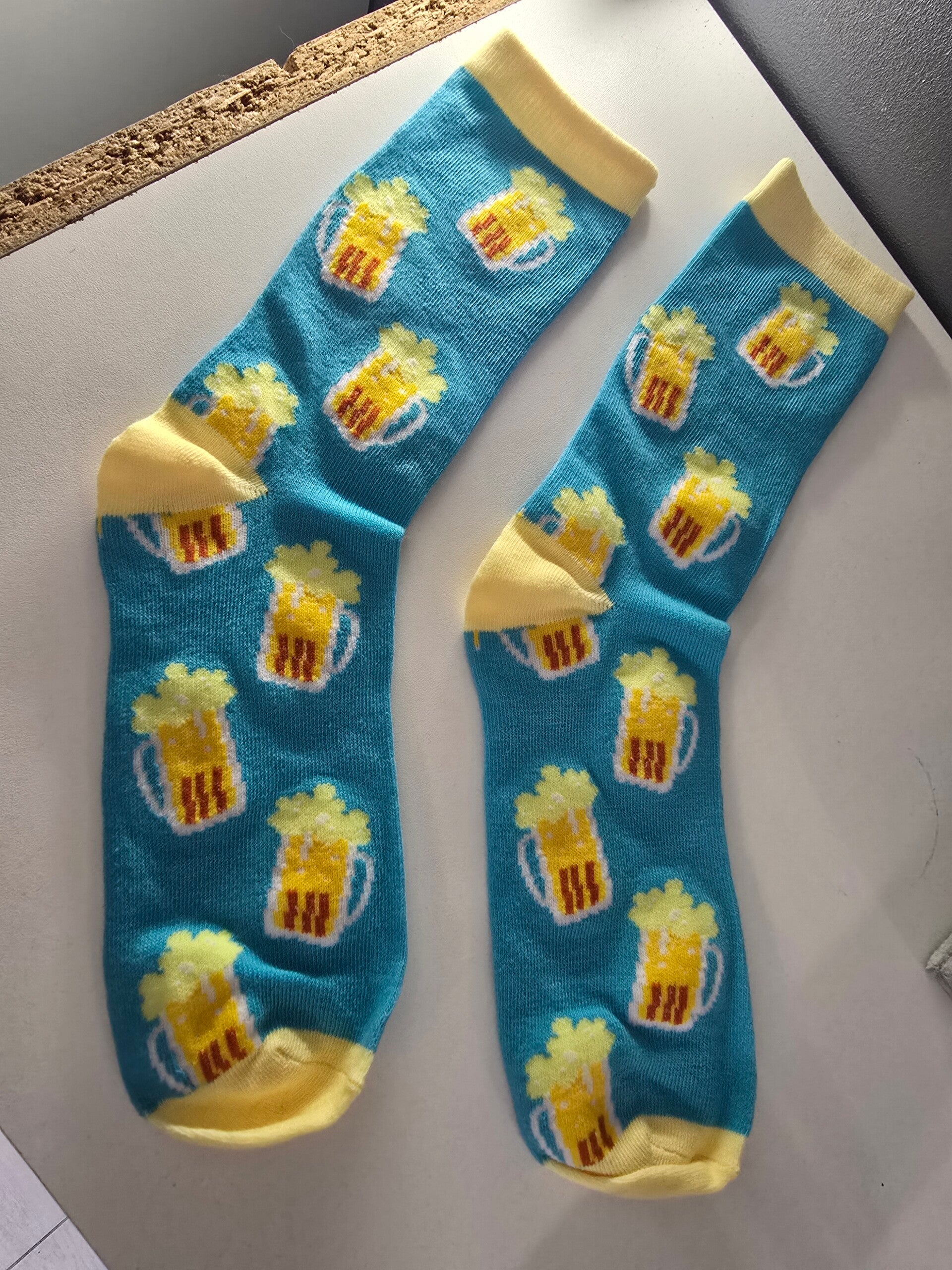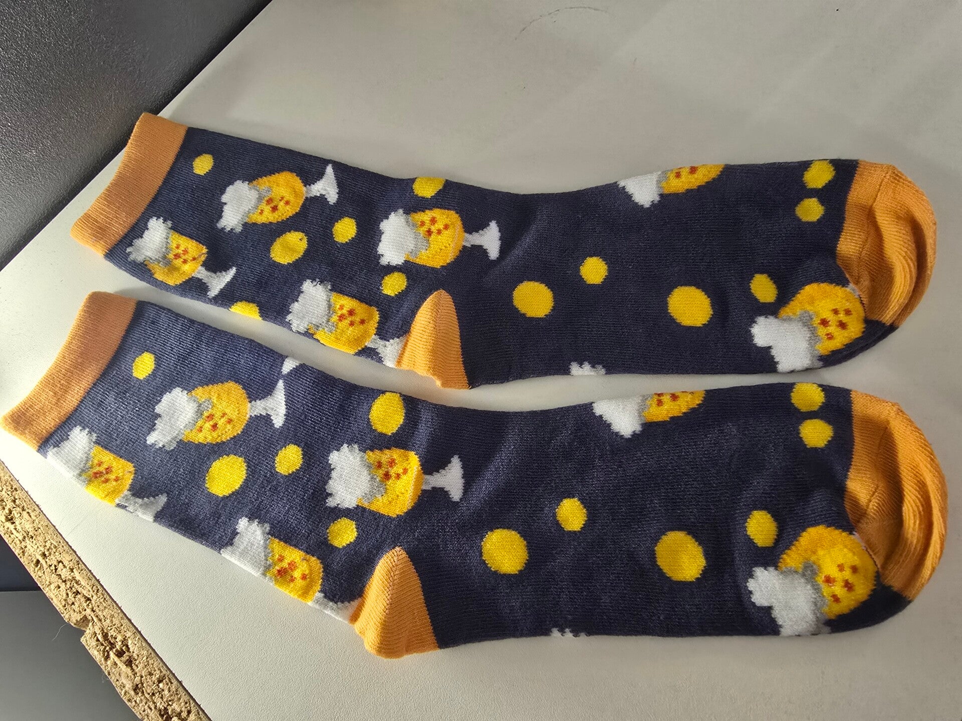 Chaussettes ils disent homme sur le descriptif mais chacun est libre de porter ce qu'il veut, fantaisie "bière".
